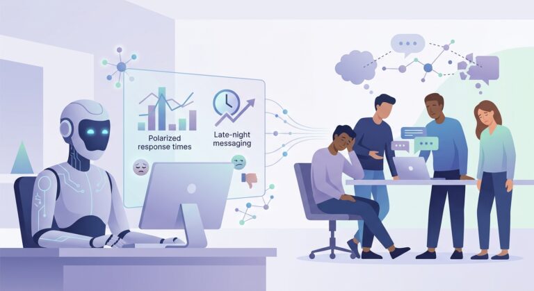 AI가 슬랙 메시지 패턴을 분석한 결과, 응답 시간의 양극화와 심야 메시지 증가가 팀 번아웃을 73% 정확도로 예측했다.